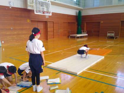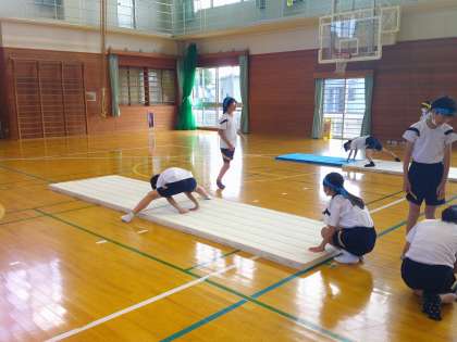 久しぶりのマット運動だったので、今どの技ができるかを確認しました。