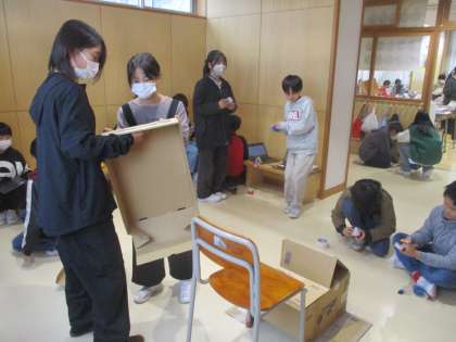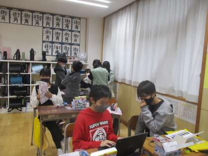 MESHとモーターカーを用いて、明るさが変化した時、人を感知した時、どんな反応をするようにプログラムを組むのか、悩みながら真剣に取り組んでいます。