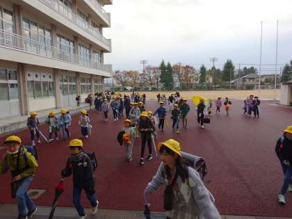 登校の様子です。寒い朝ですが、元気に登校してきました。