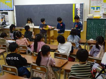1年生の算数科での様子です。 カードを使い、2桁引く1桁の計算を素早くしています。