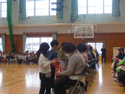地域の方々に元気が出るメダルをつくりました。感謝の気持ちを言葉や態度で表しました。喜んでくださってとても嬉しかったですね。