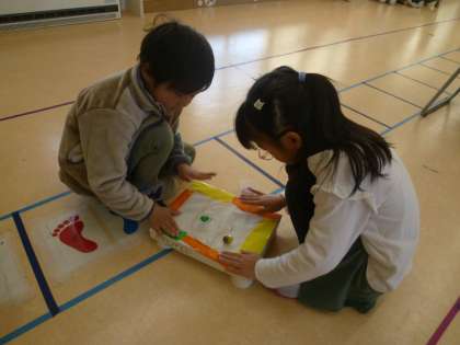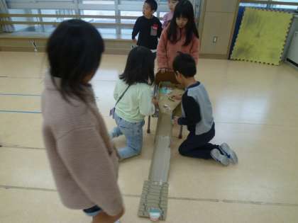 友達のおもちゃで遊んでみました。よいところや、もっとこうしたらよいとおもうところを付箋に書いて渡し合いました。どんどん楽しいおもちゃができあがっています。