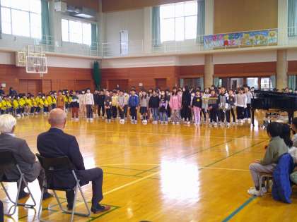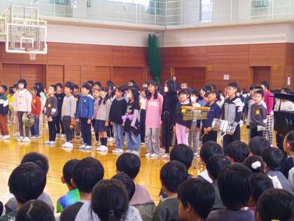 今日は地域の方をお招きして、「感謝の集い」を行いました。3年生は、学習成果発表会で歌った「おかしのすきなまほうつかい」と「帰り道」を披露しました。元気いっぱい歌い、地域の方々へ感謝の気持ちを伝えることができました。