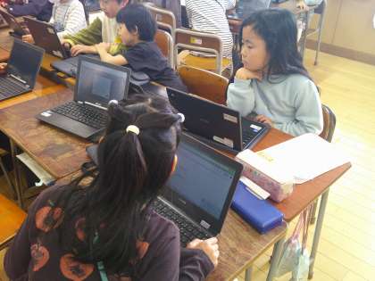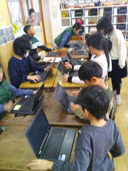 3年生の総合的な学習の時間では、これまで学習したことをもとに、3学期のまとめへ向けた学習の計画を立てています。もっとくわしく調べたいテーマごとにグループを作り、いつまでにどのように調べるかを話し合いました。クロムブックを使って計画を確認し、今後の学びの見通しをもつことができました。