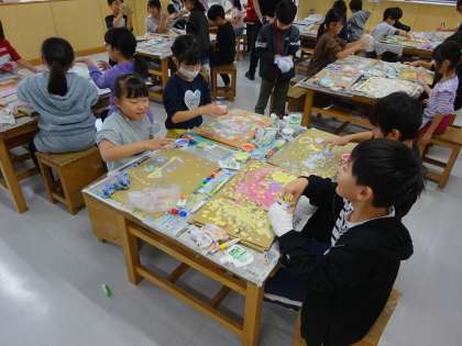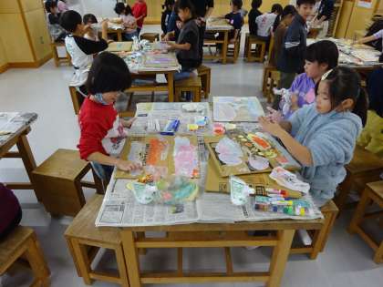 2年生は図工の時間になにやら楽しそうなことをやっています。