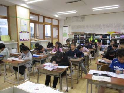 2学期にも、個別最適な学びへと向けて、授業改善をしてきました。この日は、教え合う必要がなかったようで、黙々と課題に向かっていました。子供たち一人一人に「授業中は、真剣に取り組むものだ」という気持ちが整っているようです。