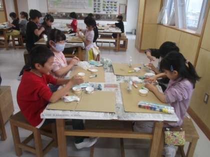 「わたしも億超えアーティスト?!」とわくわくしながら、絵の具をのせていく間に感じたインスピレーションを大切に、それぞれの作品を仕上げようと頑張っていました。