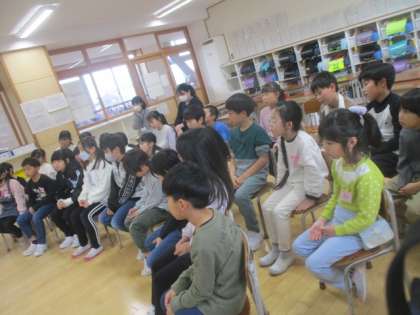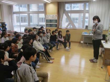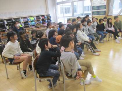 奥田北の図書館の方にいろいろな本の読み聞かせをしていただきました。本の世界に引き込まれ、真剣に聞いていました。