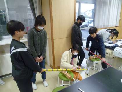 支点の位置は変えずに、作用点と力点の位置をそれぞれ変えて手ごたえの変化を実感することができました。