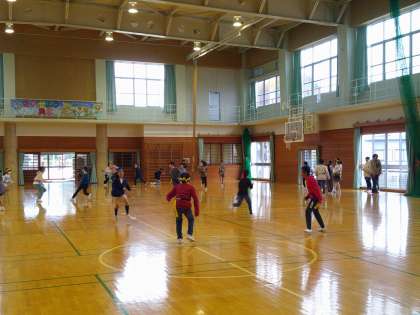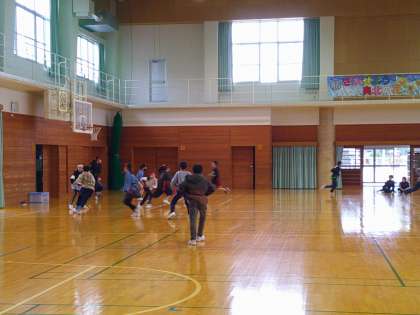 運動委員会のイベントで、タグ取りおにごっこをしました。
