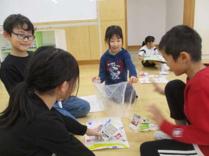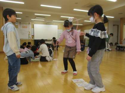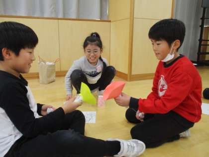 生活科で作ったおもちゃを使って、学年の友達と遊び合いました。おもちゃを作った子供も、おもちゃで遊んでいる子供も、どちらもとても楽しそうな様子でした。また、自分のおもちゃをもっと楽しくする工夫に気付けたようです。来週、1年生を招待する日に向けて、さらにおもちゃの遊び方をパワーアップさせていきます。