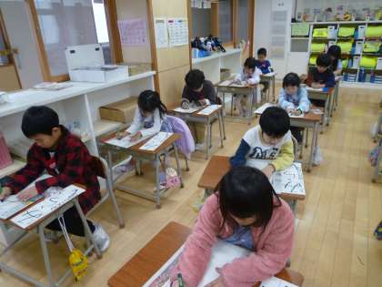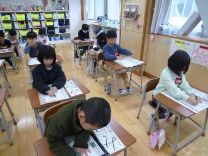 今日は「み」を練習した後に、「みらい」を書きました。とめ・はね・はらいに気を付け、集中して書けるようになっています。