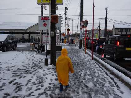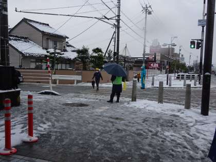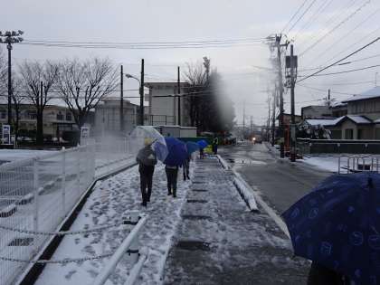 雪が降ると、足下が滑りやすくなるとともに、歩く場所も狭くなり危険が増します。