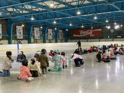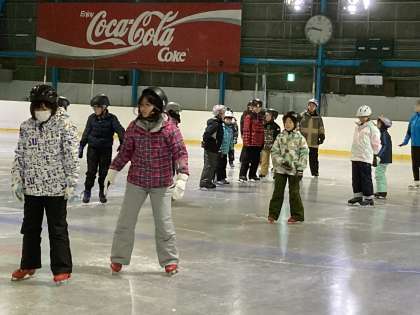 4年生の子供たちは少しずつ靴やリンクに慣れながら、氷上の世界を楽しんでいます。