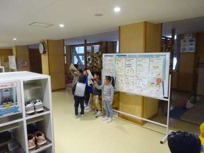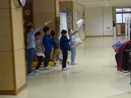 今日も2年生が玄関フロアであいさつ運動に取り組んでいました。