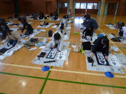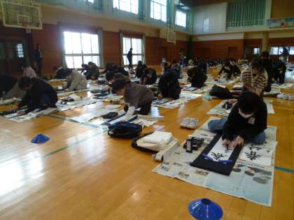 書き初め大会では、小学校生活最後の大会で練習した成果をしっかり出そうと真剣に取り組む姿が見られました。結果は明日お楽しみに!