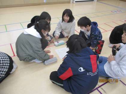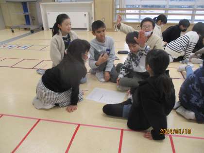 宿泊学習の生活班で集まり、係や目当てを決めました。