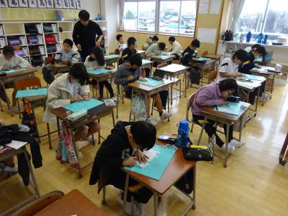 図工の学習で版画に挑戦します。 掘るところ、残すところ、掘り方を工夫しながら取り組んで行きます。