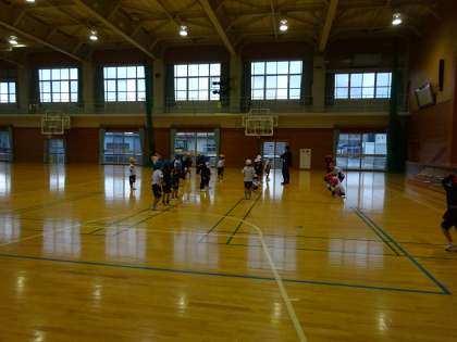 体育館では1年生が体育をしていました。 うまとびに挑戦です。 連続して跳ぶ技に挑戦していました。