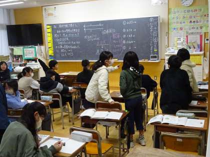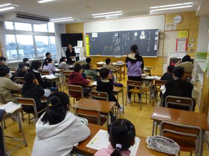 1組は道徳で「ガンジー作戦・水ミー作戦」を基に話し合っていました。