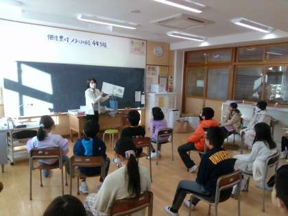 「100万回生きた猫」「おっと、落とし物」の読み聞かせを聞きました。100万回生きた猫では、子供たちは「何回も生き返ることが本当に幸せなのか」を考えながら聞きました。