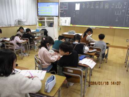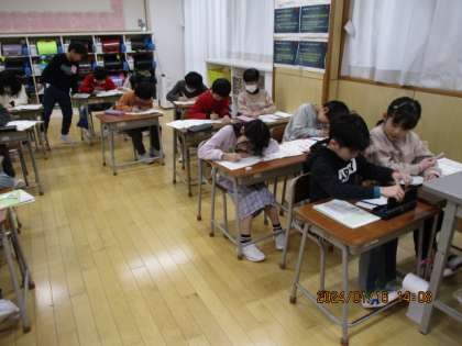 漢字の外形を捉えて、正方形や長方形等、仲間分けをしています。「ぼくの名前は、正方形ばっかりだよ」といった気づきも聞こえてきました。整った字を書く意識が高まるよう、言葉かけをしていきます。ぜひ、ご家庭での字が、以前よりもわずかでも整っていたら、盛大にほめていただけると幸いです。