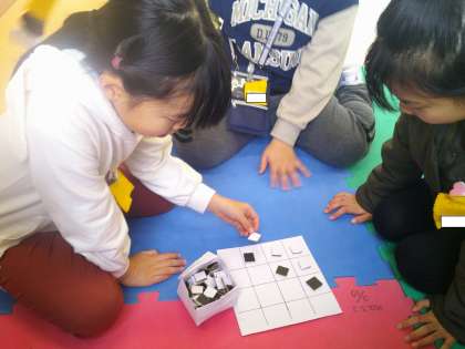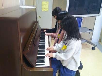 今日の昼休みは、2階プレイルームで遊びました。ピアノを弾く子、6年生が作成した五目並べで遊ぶ子、長縄を楽しむ子。元気いっぱい、思い思いの遊びを楽しみました。寒い日が続いていますが、元気に体を動かせて満足そうな子供たちでした。