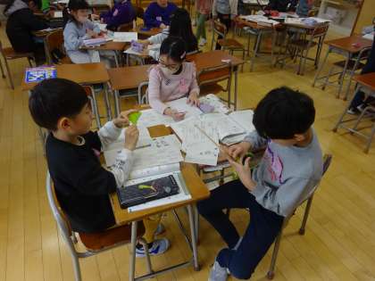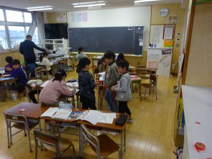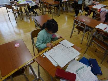 1mものさしや紙テープなどを使って、いろいろな長さを調べています。