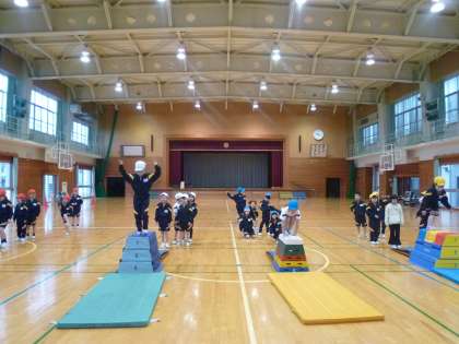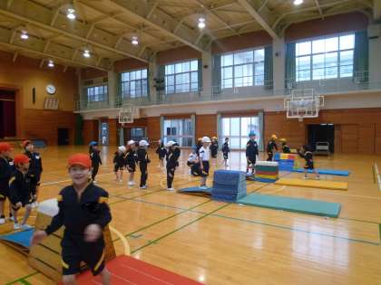 跳び箱に乗ったり、跳んだりしました。「もっと色々な跳び方をしたい!」と意気込んでいます。みんなで協力して、準備・片付けもできるようになっています。