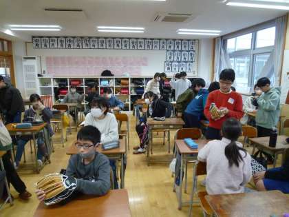 手にしたときの軽さに驚きながらも、子供たちは早くキャッチボールをしてみたいと楽しみにしています。
