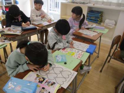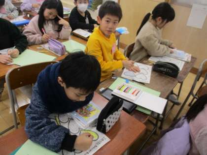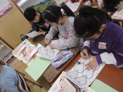 生活科の学習では、友達のすてきなところや頑張っているところなどをカードに書きました。「○○さんは算数のときに教えてくれたなあ。」「たくさんの友達に書きたいなあ。」「○○さんの好きな色でカードを塗って、喜んでもらおう。」などを考えながら、丁寧に仕上げていました。カードを交換する日が楽しみですね。
