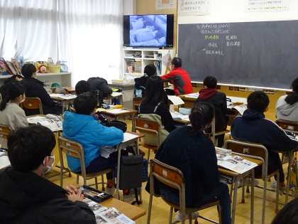 社会科の学習では、戦争中の暮らしについて、動画を見て学習していました。
