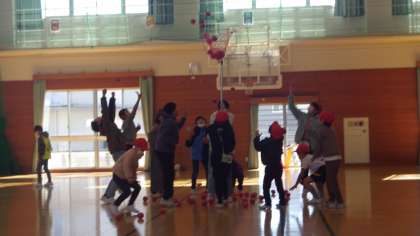 4年生 玉入れ大会(運動委員会の企画) 公開日 2024/02/13 更新日 2024/02/13 4年生 今日は昼休みに、運動委員会が企画した玉入れ大会が行われました。ひまわり班ごとに玉をなげて競いました。