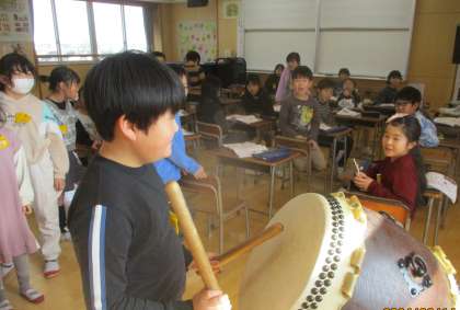 3年生 音楽科「おはやしのリズムを長胴だいこでたたこう」