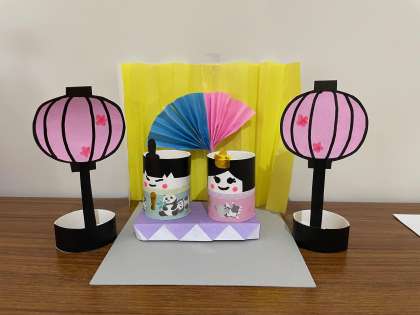 1年生が作ったひな人形を持ってきてくれました。 「大変だったけど、がんばって作ったよ。」と、教えてくれました。