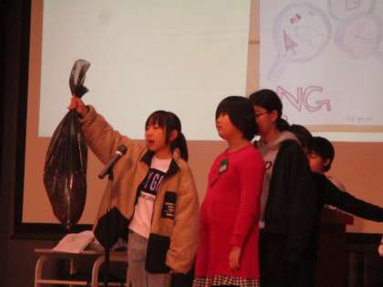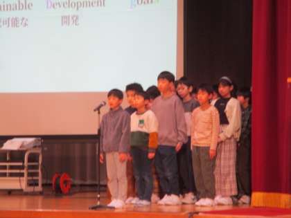 今日は学習成果発表会でした。自分たちが取り組んできたことを、相手に伝わるように話すことができました。自分たちにできることを継続的に取り組んでいきたいです。