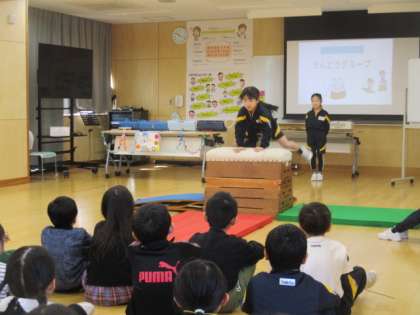 跳び箱、けんばんハーモニカ、大なわとびなど、一生懸命発表しました。