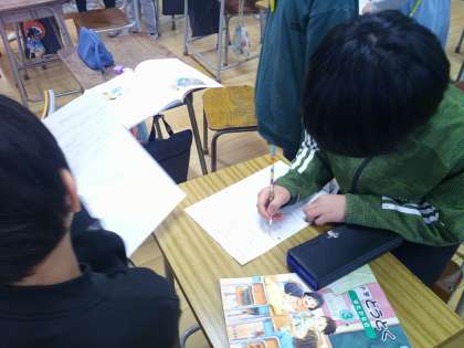 道徳の学習では、教材文の中から自分達で課題を見つけ、その課題について友だちと話し合うことを中心に授業を進めています。今日の教材文は「協力クラス」。一人一人の良さを認めながらクラス全体でまとまるためにはどうしたらよいかを話し合いました。