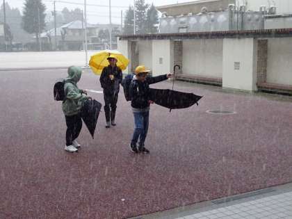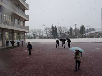 雪はすぐにやみ、お昼には青空がのぞいています。