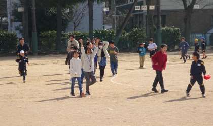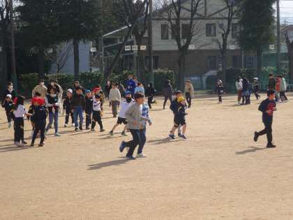 青空の下、グラウンドを走りました。
