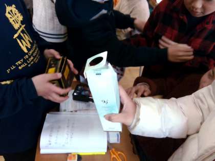 4年生は、立体の勉強をしています。今日は、実際に家からもってきた空箱を切って、展開図にしました。同じ箱でも切り方によって展開図が異なることをがわかりました。