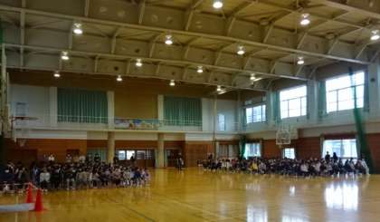 今日は1〜5年生が体育館に椅子を入れてみました。