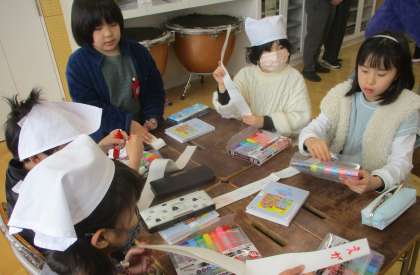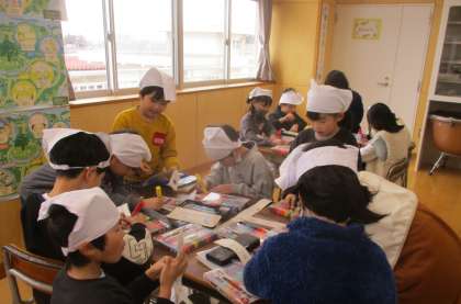 「あいさつの輪を広げよう」と、あいさつウェンズデーに参加する時に着けるたすきをつくる集会を開きました。
