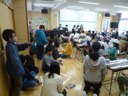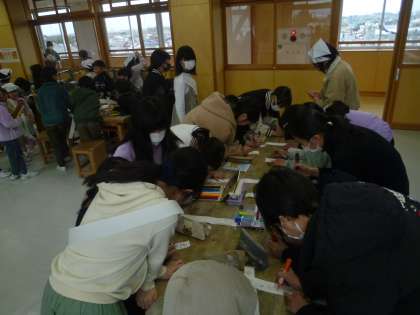 どんなたすきにするか友達と相談しながら活動し、短い時間で完成させていました。