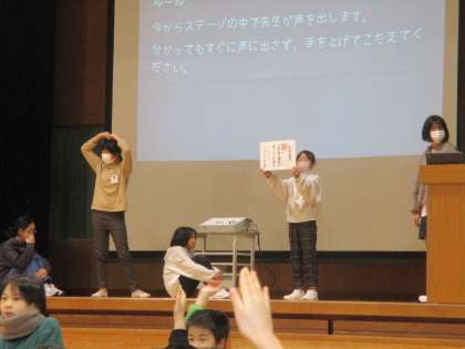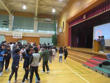 卒業を祝う会のお礼に「祝う会ありがとう集会」を開きました。この声誰だクイズや間違い探しなど、下学年が楽しそうに参加してくれて嬉しそうな様子でした。残り一週間、これまでの感謝の思いが伝わるように生活していきましょう。
