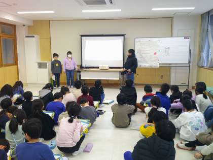 今日は、総合的な学習の時間に調べたことを2年生へ向けて発表しました。これまで2年生がわかるような発表方法を工夫し、何度も練習してきました。発表を聞いていた2年生からたくさんの感想をもらい、発表後は「楽しかった!」「うまく発表できてよかった!」と満足した様子でした。