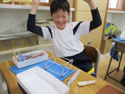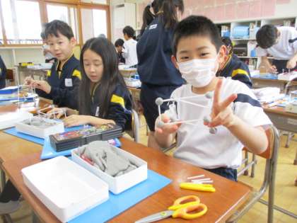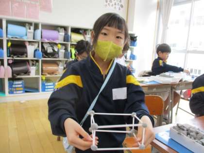 立体の学習を、具体物をつかって学びました。「へん」や「ちょう点」の名前も覚えられたでしょうか。