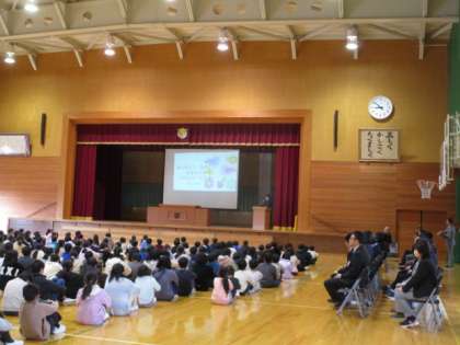 生徒指導の先生から、春休みの生活についてお話を聞きました。