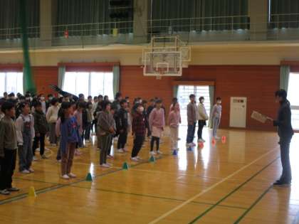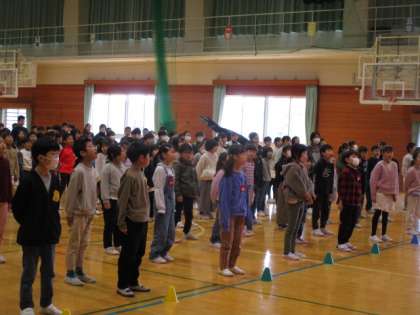 全校で歌の練習をしました。心のこもった元気な歌声でした。
