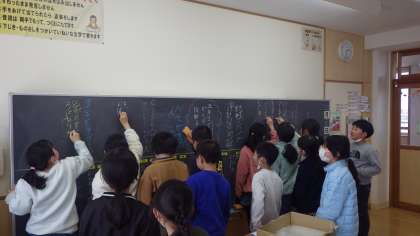 1年間がんばったことや5年生で挑戦したいことを一人ひとり黒板に書きました。1年間がんばりましたね。